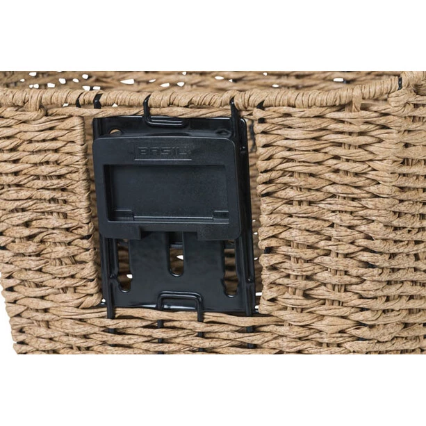 Le Basil Bremen Rattan Look BE/KF est un panier de vélo amovible que vous pouvez simplement fixer au guidon d’un simple clic et retirer tout aussi facilement. Le panier est livré avec une plaque d’adaptation BasEasy/KF (BE/KF). Avec cette plaque d’adaptation, le panier est adapté à un système Klickfix ou Basil BasEasy. C’est à vous de choisir ! Vous pouvez acheter un tel système séparément. Avec le porte-volant BASIL KF, vous pouvez également fixer le panier à un vélo électrique.