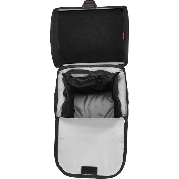 Sacoche de guidon compacte soudée et étanche avec couvercle utilisable d’une seule main. Deux poches intérieures et une poche zippée aident à l’organisation, tandis que le compartiment pour smartphone dans le couvercle permet de ranger des téléphones jusqu’à 15 x 7,5 cm. Avec plaque d’adaptation KLICKfix pour adaptateur de guidon.