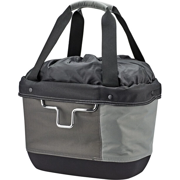 Ce panier léger en tissu 3 couleurs, équipé d’une fermeture à lanière et d’une base étanche thermoformée, se fixe sans efforts à la fixation pour cintre KLICKfix. L’arceau chromé procure une stabilité additionnelle et évite au contenu d’être compressé. L’arceau et le tissu peuvent être rapidement séparés pour un nettoyage facile.