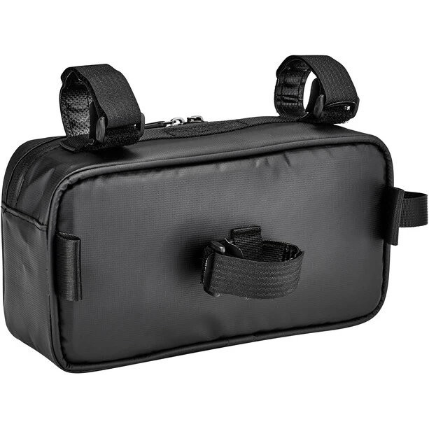 L’EVO-2 se fixe au guidon ou au cadre à l’aide de fermetures Velcro amovibles. Le sac offre une poche extérieure zippée facile d’accès pour les ustensiles rapidement disponibles et un grand compartiment principal avec plusieurs séparations pour un contenu bien rangé.
