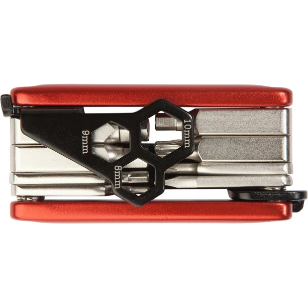 Multi-outil compact avec douze fonctions. L’outil se compose de cinq clés hexagonales (Hex 2/3/4/5/5/6 mm), d’une Torx 25, d’un tournevis cruciforme cruciforme Phillips taille 1, d’un tournevis à fente de 5 mm, de trois clés plates 8/9/10 mm et d’un démonte-pneu. Avec cet outil, vous êtes très bien équipé pour chaque tour.