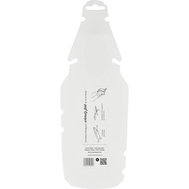 Le schmutzfink de riesel design est un garde-boue pour la selle, qui a été conçu pour les vélos d’enfants. Les évidements pour le montage dans les haubans de la selle sont conçus pour que le garde-boue puisse être monté sur des selles d’enfants plus petites. Ici, les haubans de la selle sont plus rapprochés à l’arrière. La fonction du schmutzfink correspond à celle du Mudguard ritze L. Quatre points d’attache permettent un maintien sûr et ferme sur la selle. L’assemblage se fait sans outils. Le « schmutzfink » était conçu comme une protection contre les éclaboussures pour protéger les fesses de la saleté, de la boue et de l’eau dans des conditions difficiles.