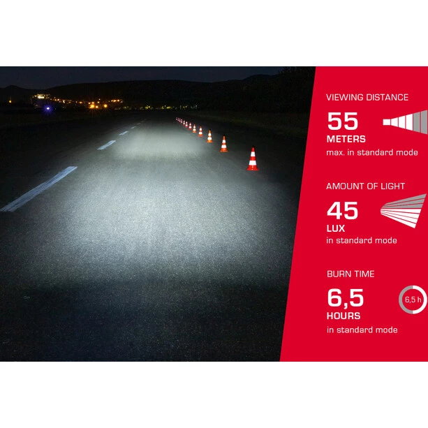 L’AURA 45 USB dispose d’une batterie rechargeable intégrée. Il est rechargé via la prise Micro-USB, qui est également possible sur n’importe quel PC. Avec le câble Micro-USB fourni, l’éclairage avant est rechargé complètement en 2,8 heures maximum. La batterie lithium-ion est dotée d’une protection contre les décharges profondes et les surcharges. De plus, il n’a pas d’effet mémoire et peut facilement être rechargé complètement.