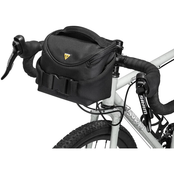 Sac de guidon astucieux qui se transforme en sac de hanche. Idéal pour les appareils photo, les téléphones portables et autres objets importants qui doivent toujours être à portée de main. Housse de pluie incluse.