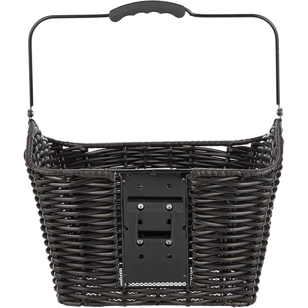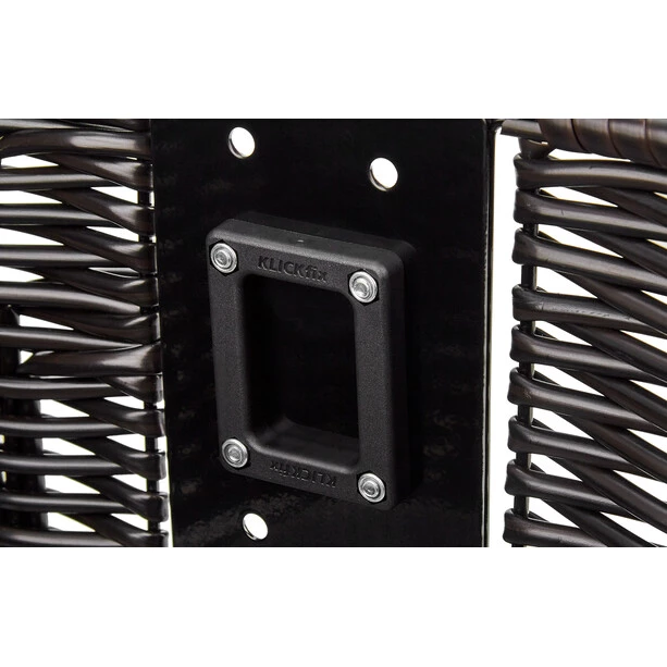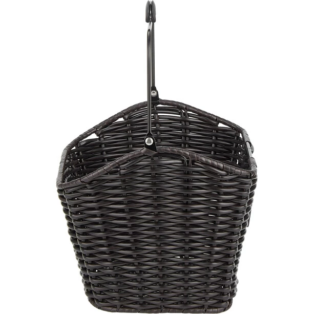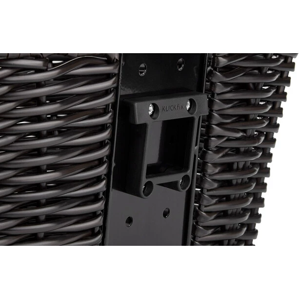 Panier guidon tressé avec sangles en plastique à la mode, résistant aux intempéries, au design large ou extra fin. Fabrication de haute qualité avec poignée élégante et poignée de transport. Avec plaque d’adaptation réglable en hauteur pour l’adaptateur de guidon KlickFix.