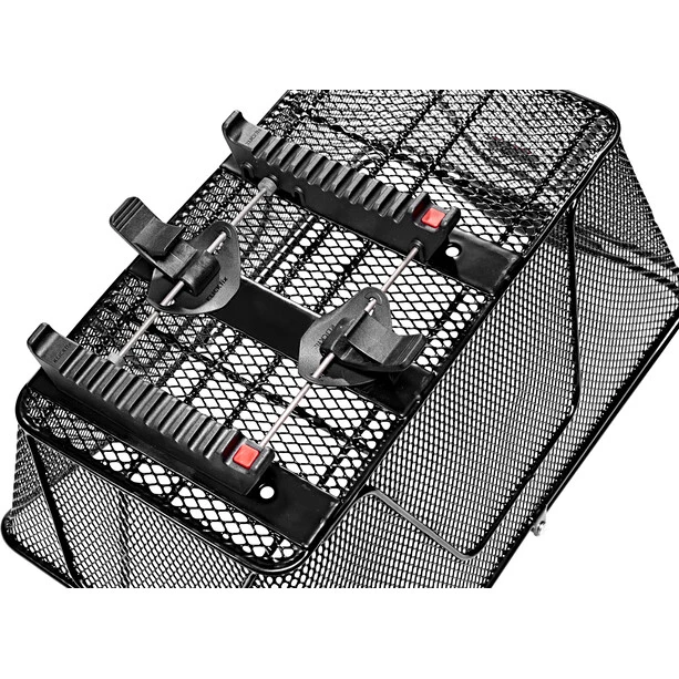 Panier à roulettes arrière avec fixation rapide universelle TopKlip pour tous les porte-bagages courants. Avec découpe emboutie à l’avant pour les selles avec ressorts de traction et de compression ou montage en selle profond. Conception orientée longitudinalement avec arceaux de renfort intégrés et structure en treillis stable et enduit. Idéal pour le transport de sacs d’école ou de sacs à provisions.